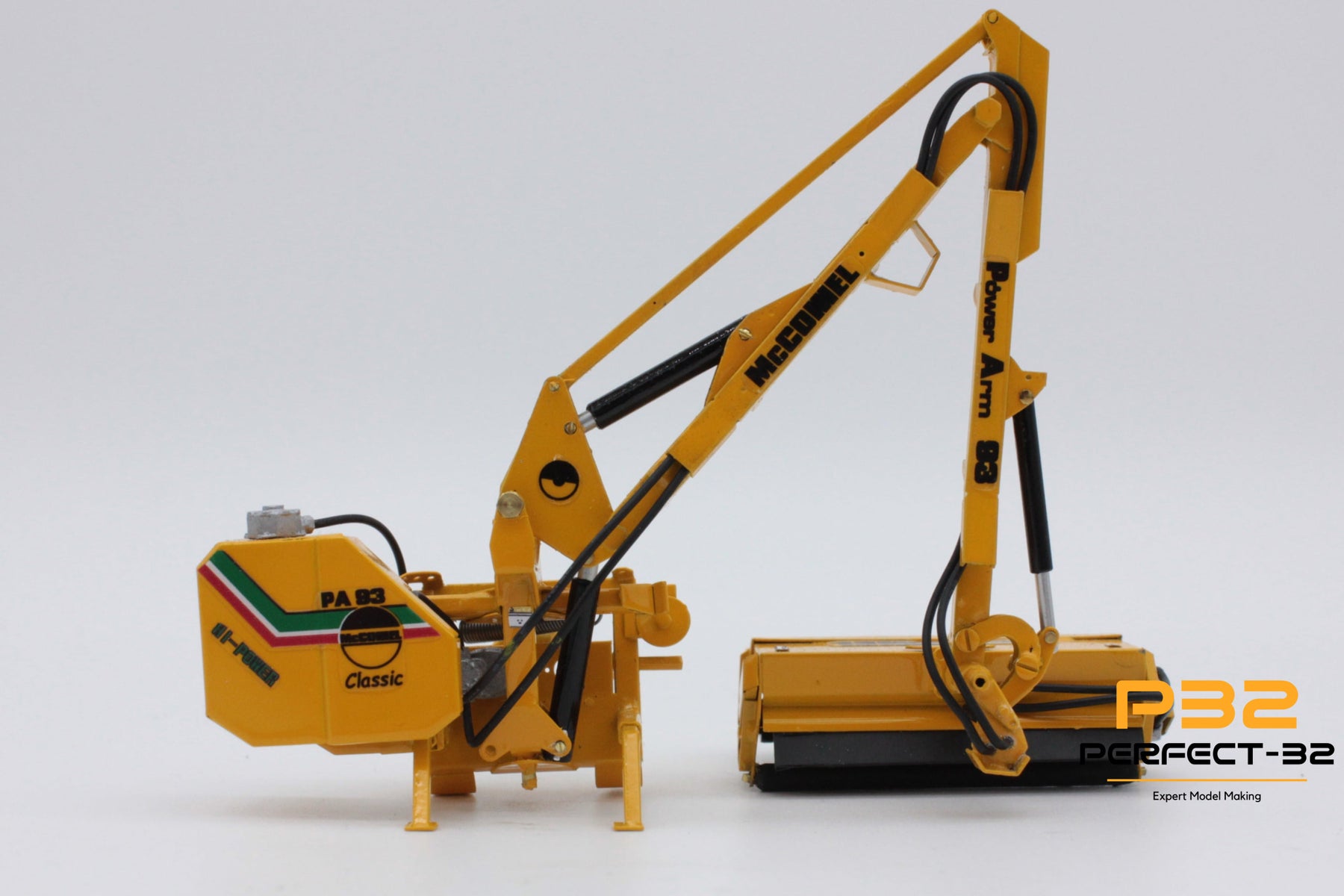 We do offer a permanent fitting of this model to a model tractor. So when the model is in the cutting position it will stay level and will not fall over. (like the real machine) We will need your model to do this. If we don’t have any McConnels in stock you can reserve one by sending us your tractor for fitting, this acts as a deposit for a model when we make the next batch,